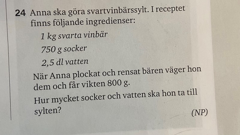 Då borde Anna använda endast 80 % även av övriga ingredienser.