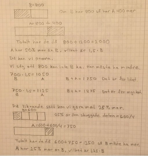 Det betyder att de tillsammans har x + 1,5x = 2,5x kronor.