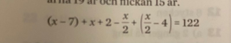 Fast vänta nu ett tag… nu vart jag förvirrad igen:/ om tvillingarnas uttryck är 2(x/2) och det står att flickan är 4 år yngre än tvilingARNA, alltså de båda tillsammans så borde det väll ändå bli 2(x/2)-4(uppenbarligen inte men fattar verkligen inte varför det inte skulle funka)