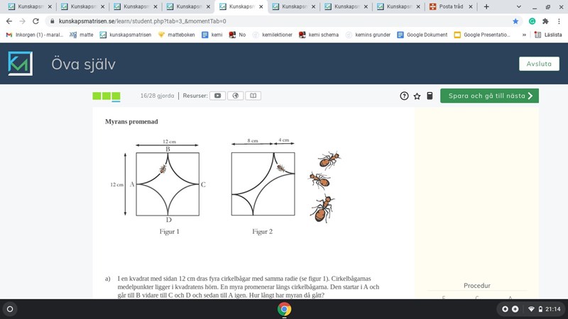 Det är så att det finns en fråga där det står :Om myran inte får korsa sin egen väg kan cirkelbågarnas radier inte ha vilka värden som helst. Undersök vilka radier som är möjliga.