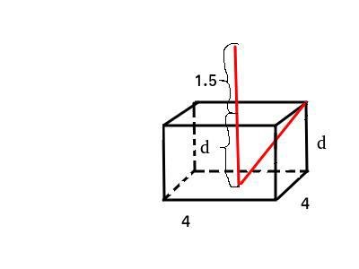 Ett rakt vass-strå står mitt i en kvadratisk damm med sidan 4m. Strået höjer sig 1,5m över vattenytan. Om man sträcker strået mot dammens ena hörn når det precis vattenytan. Hur djupt var vattnet i dammen?