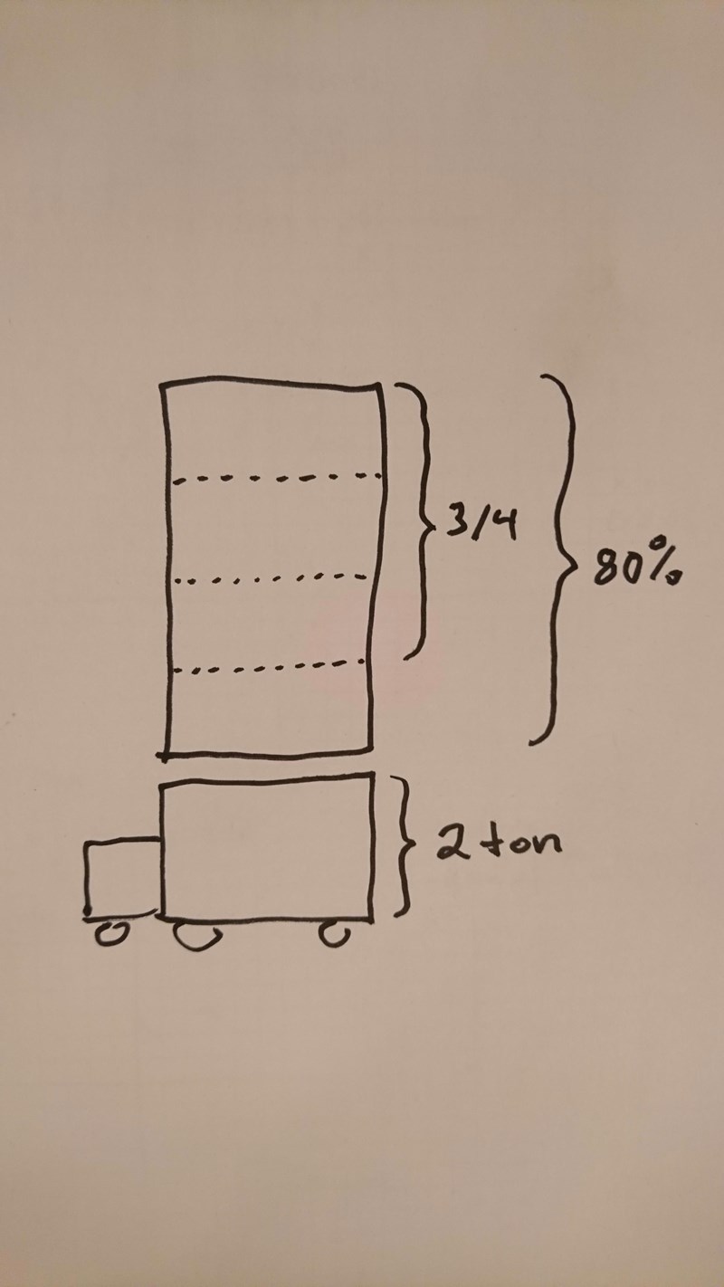 Om gruset utgör 80% av vikten innebär det att flaket utgör 20%. Flaket väger 2 ton, hur mycket väger då flaket och gruset tillsammans?(Innan han tippar av grus)