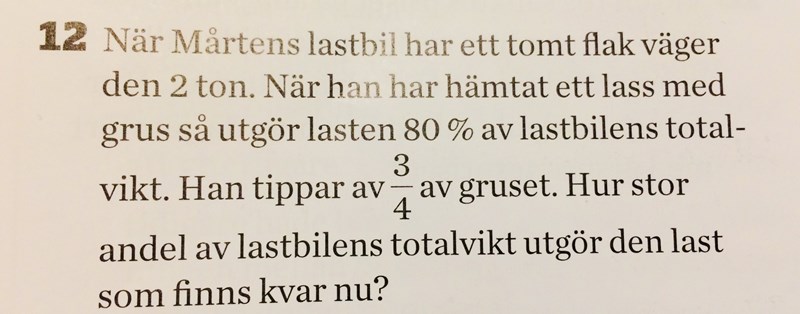 Nu återstår bara sista frågan - hur stor del av denna vikt utgör de 2 ton grus som är kvar på flaket?