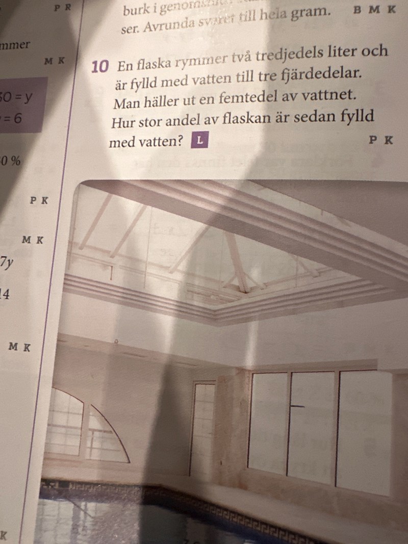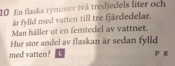 - Du ska ta reda på hur stor andel det du har kvar utgör av flaskan. Hur gör man då?