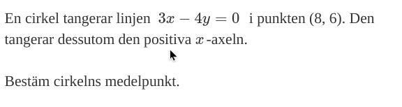 Feswa skrev:Cirkeln befinner sig mellan punkterna (8,6) och (12.5,0)