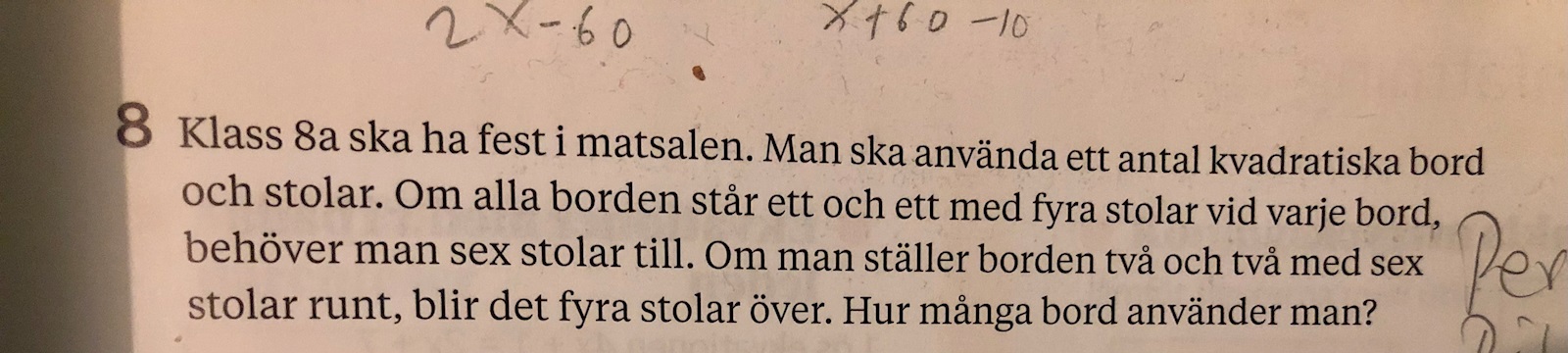 jag behöver hjälp med denna fråga kom fram till 6 bord men i facit står det 10 bord