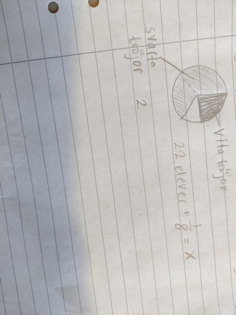 När jag ritade cirkeln så var det 1/8 som var tomt så då tänkte jag att x + 1/8 skulle bli alla totalt i klassen