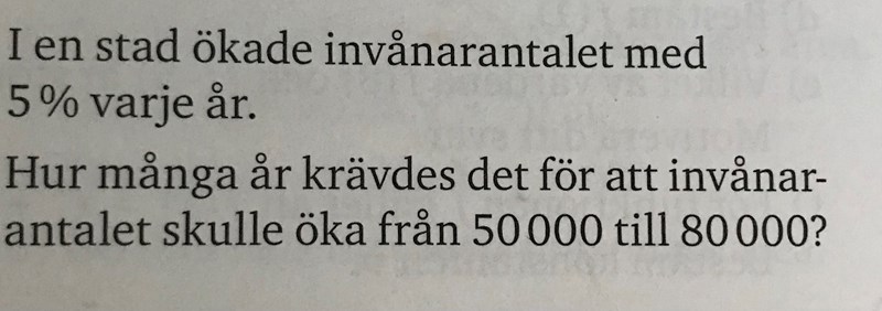 80 000 = C•1,05x+n, dvs att det är 80 000 invånare år x+n, dvs n år senare.