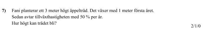 Jag får tillslut 3 + 2 som blir 5 vilket betyder att trädets blir max 5 m