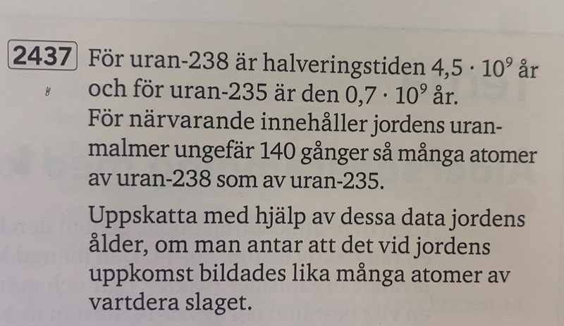 Såhär gjorde jag på en uppgift där halveringstiden var 24 000 år: