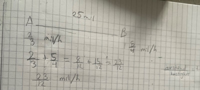 Person A reser 2/3 mil per timme, alltså (2/3)*x mil på x timmar. Person B reser lite längre på samma tid.