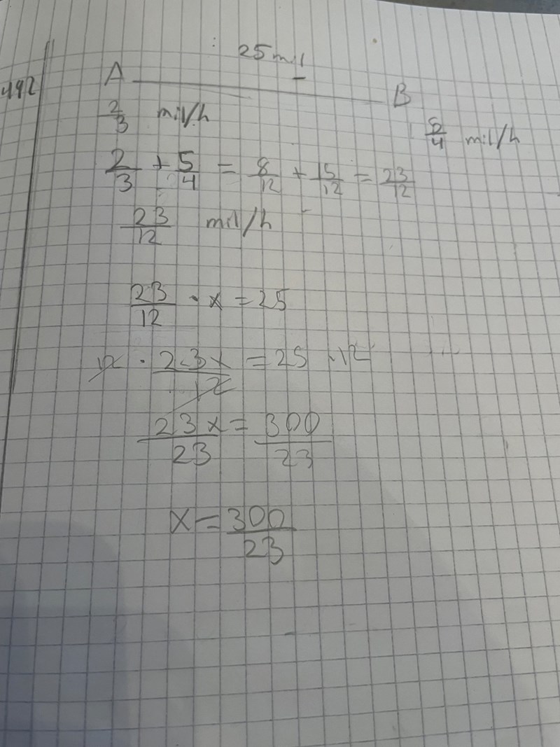 Nör de rest 25 mil tillsammans så möts de. Då har det gått x timmar.