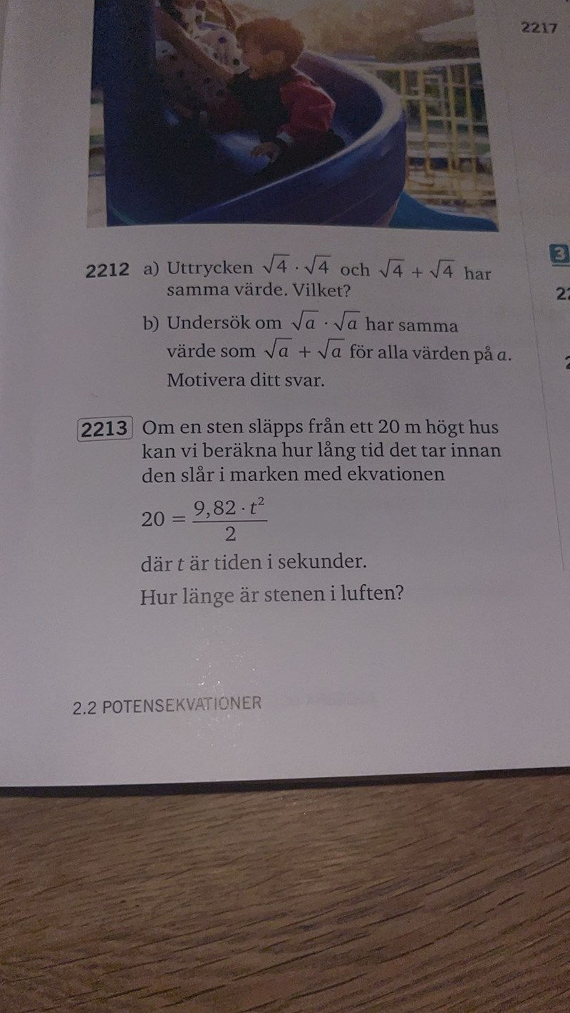 Hej! Jag försöker med 2213. I facit står det att svaret är 2 sekunder. Jag vet inte hur jag ska få fram det.