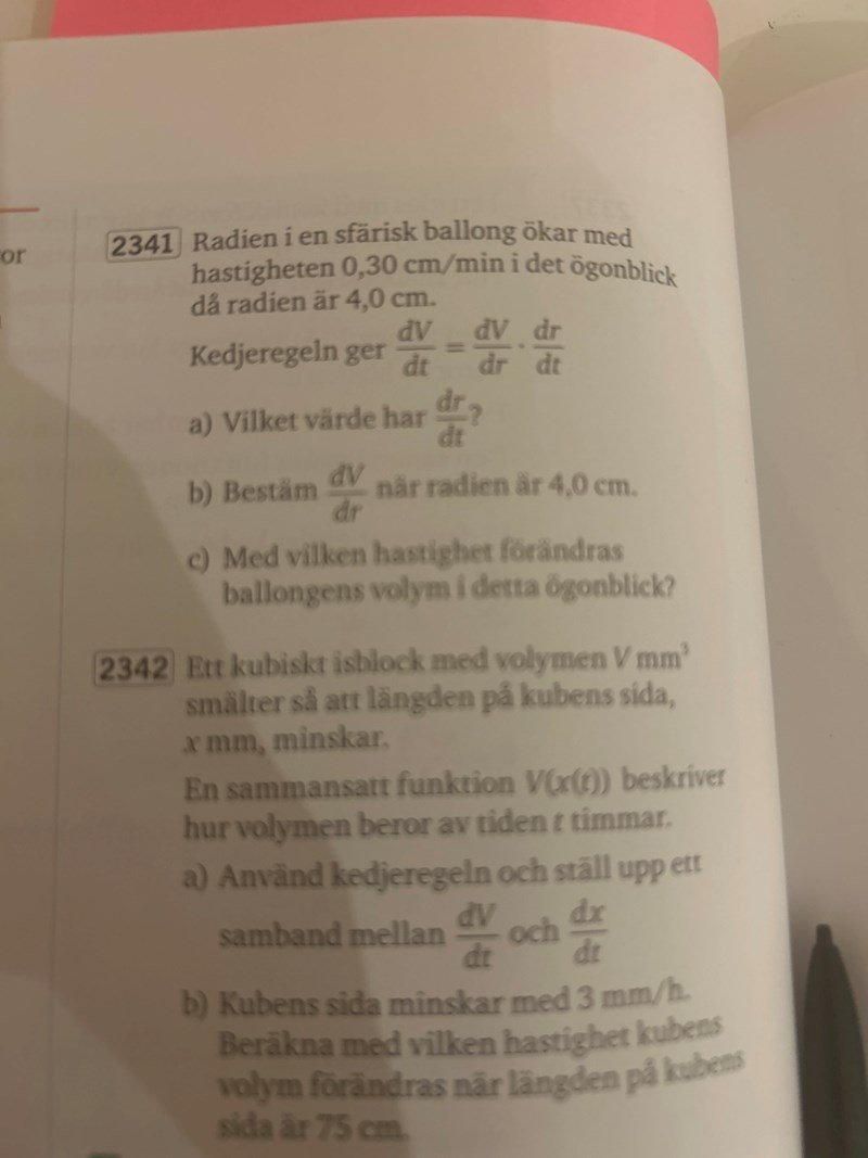 Jag har löst den som facit men skillnaden är att jag skrivit”volymen v=…”