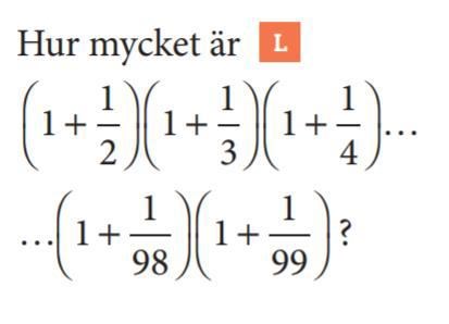 Jag har gjoet det, de blev 3/2 x 4/3 x 5/4 x 6/5 ..... 99/98 x 100/99