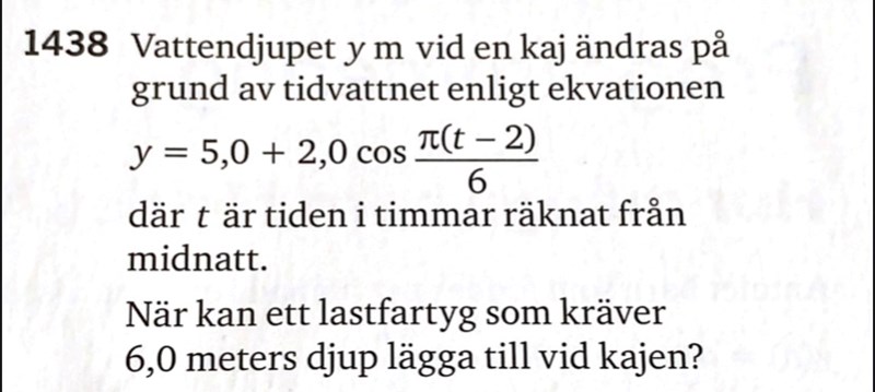 Då får du ut ett antal tidpunkter då vattendjupet är exakt 6 meter.