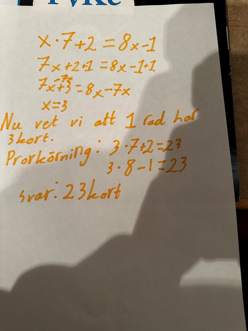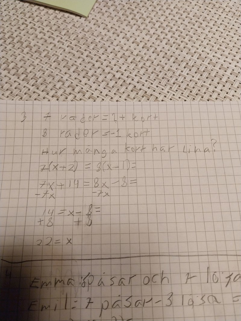 För hur många kort Lina har, men jag fattar inte riktigt hur jag gjort