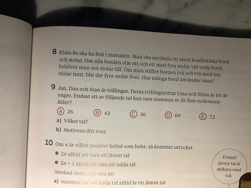 +4 istället för +2, men annars korrekt. Denna likhet beskriver antalet stolar som är tillgänliga. Lös nu ut x.