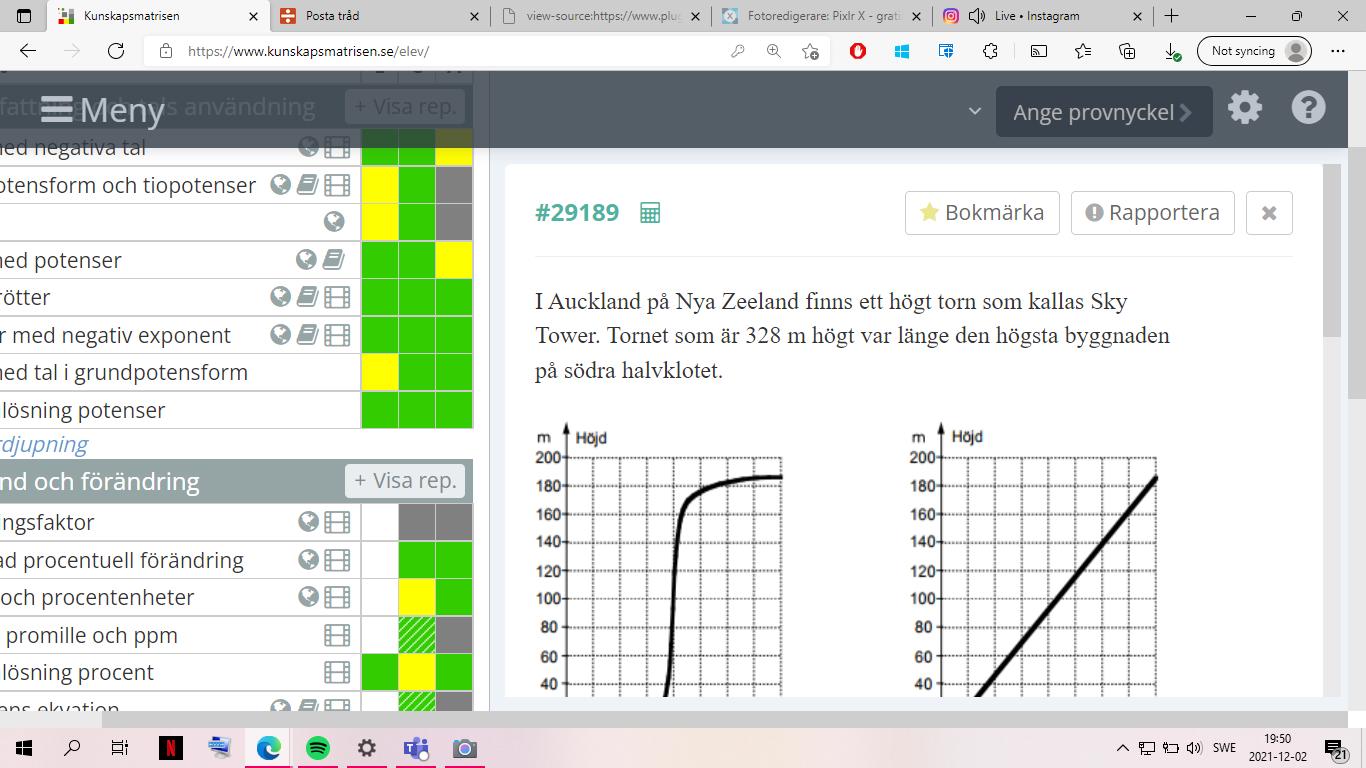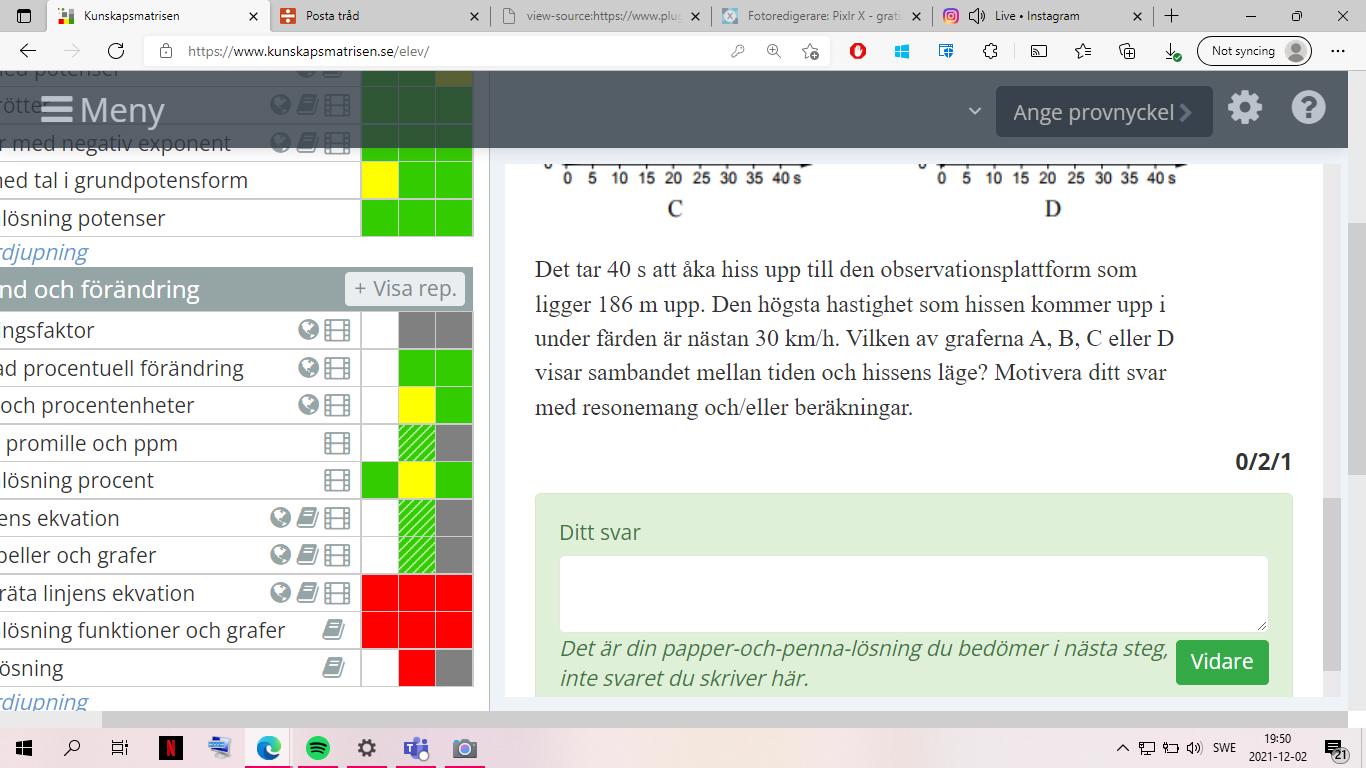 Förstår att kurvans lutning är hastigheten på hissen men förstår inte hur jag ska visa eller räkna ut sambandet mellan det som står o graferna