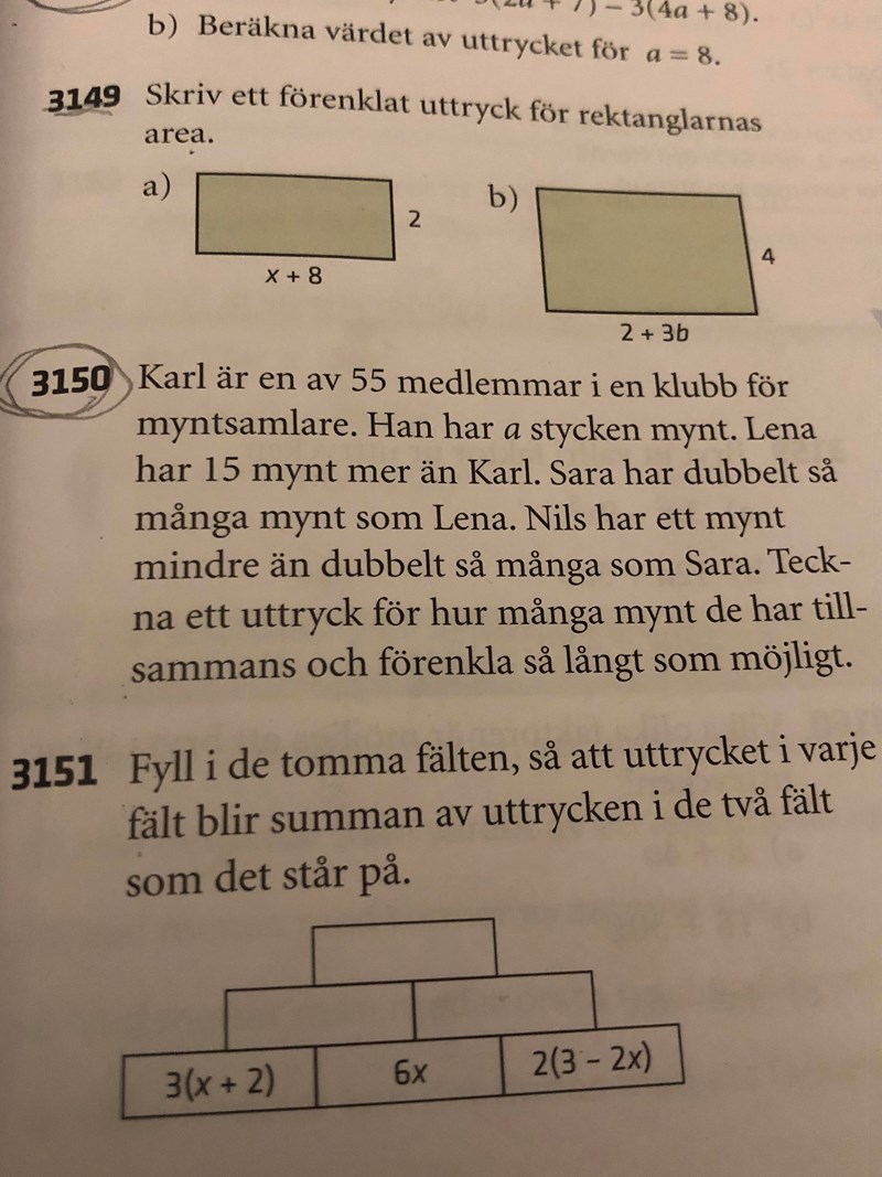 Hejsan! Jag har hållit på med den här frågan och fick fram svaret 7a + 104 men facit säger att rätt svar är 8a + 104!!