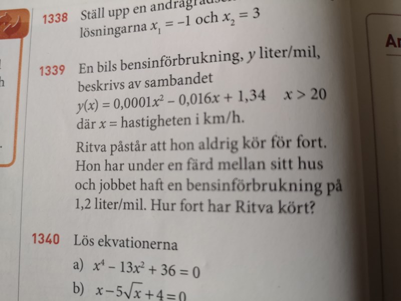 I facit är alltså svaret 150km/h men jag fick som ni ser svaret 160km/h.