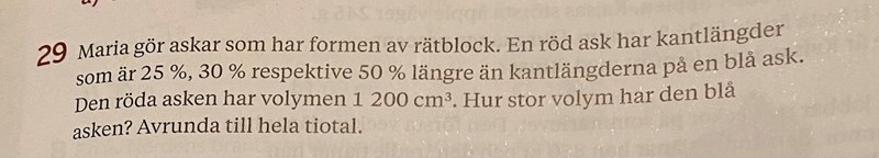 Vröd = 1,25a*1,3b*1,5c = 2,4375abc = 2,4375*Vblå.