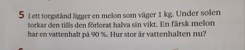 Den skrumpna melonen innehäller fortfarande 0,1 kg kladd. Hur mycket vatten innehåller den?