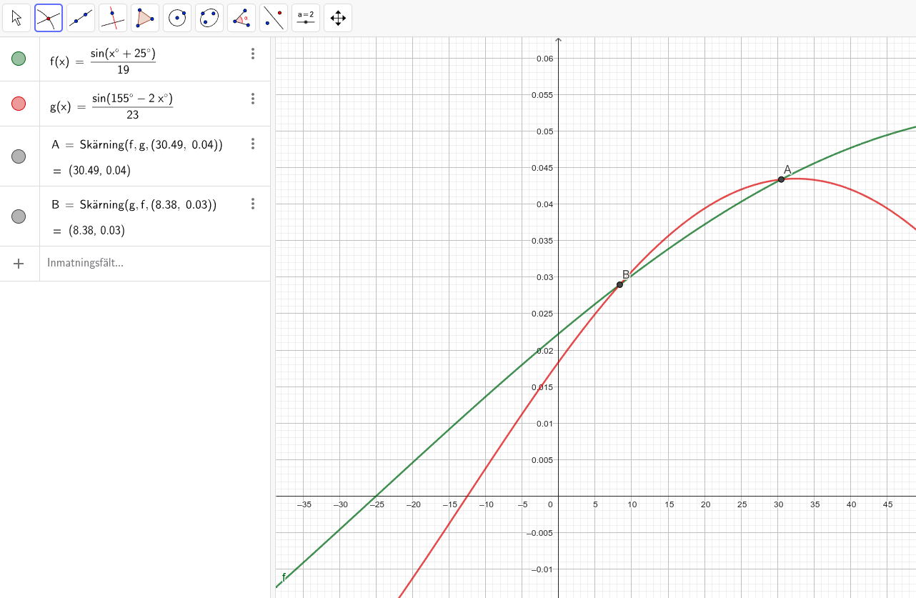 Eftersom digitala verktyg är tillåtna så testar jag Geogebra: