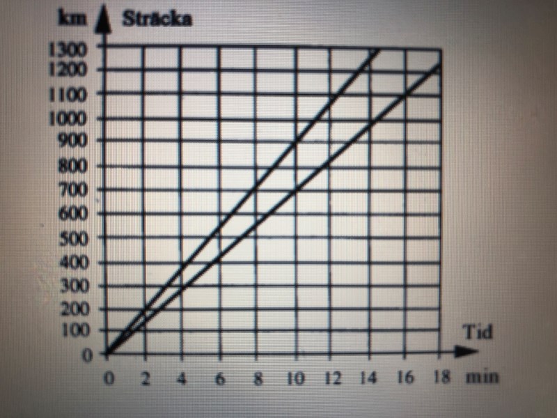 Diagrammet visar hur långt två olika raketer färdats. Hur stor är hastighetsskillnaden mellan reketerna ? Kan ni hjälpa ??