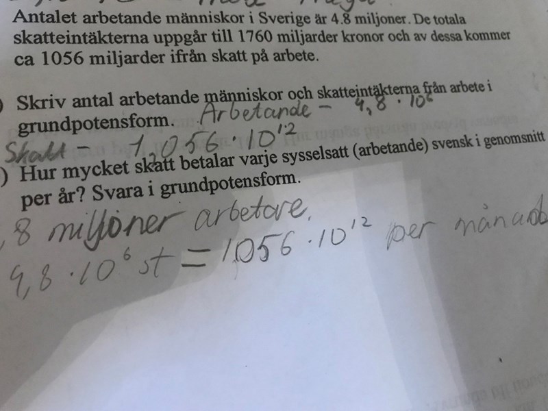Vad har du svarat? Just nu ser det ut som att det står 4,8*106 = 1,056*1012 i månaden