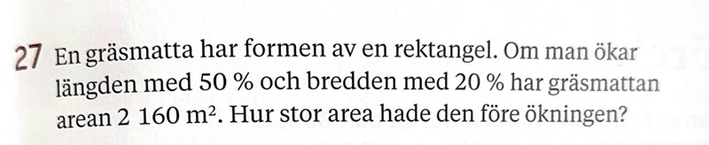 Om du sätter den ursprungliga längden till l och bredden till b.