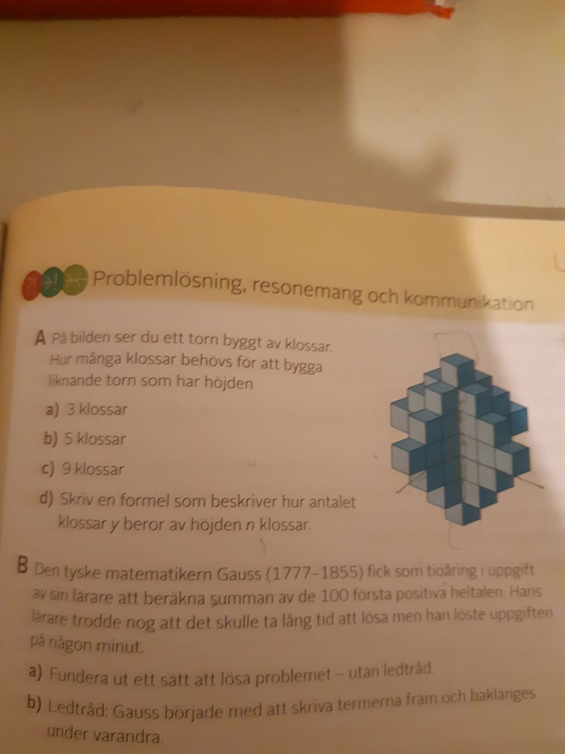 Har räknat ut antalet klossar för de olika höjderna, men jag har svårt att lösa ut en generell formel för antalet klossar y beroende på höjden n.