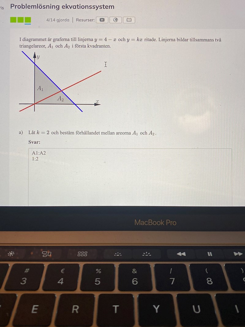 Fråga b) för andra värden på k kommer förhållandet mellan areorna vara annorlunda. Beskriv så noga du kan sambandet mellan k och förhållandet mellan A1 och A2.