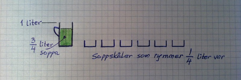 Tänk att du har ett litermått som är fyllt till 3/4 med grön soppa (alltså 3/4 liter soppa)