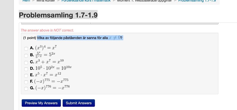 Hej, kan ni hjälpa mig med att visa vilka som är sanna, jag har uteslutit C men får fel hela tiden.