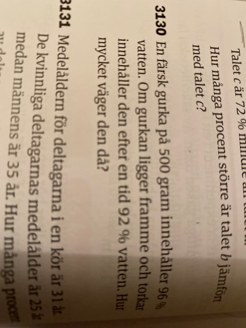 Efter en viss period är vikten x gram. Det som inte är vatten utgör nu 8 %. Då är 0,08*x = 20 gram. Du kan då beräkna x.