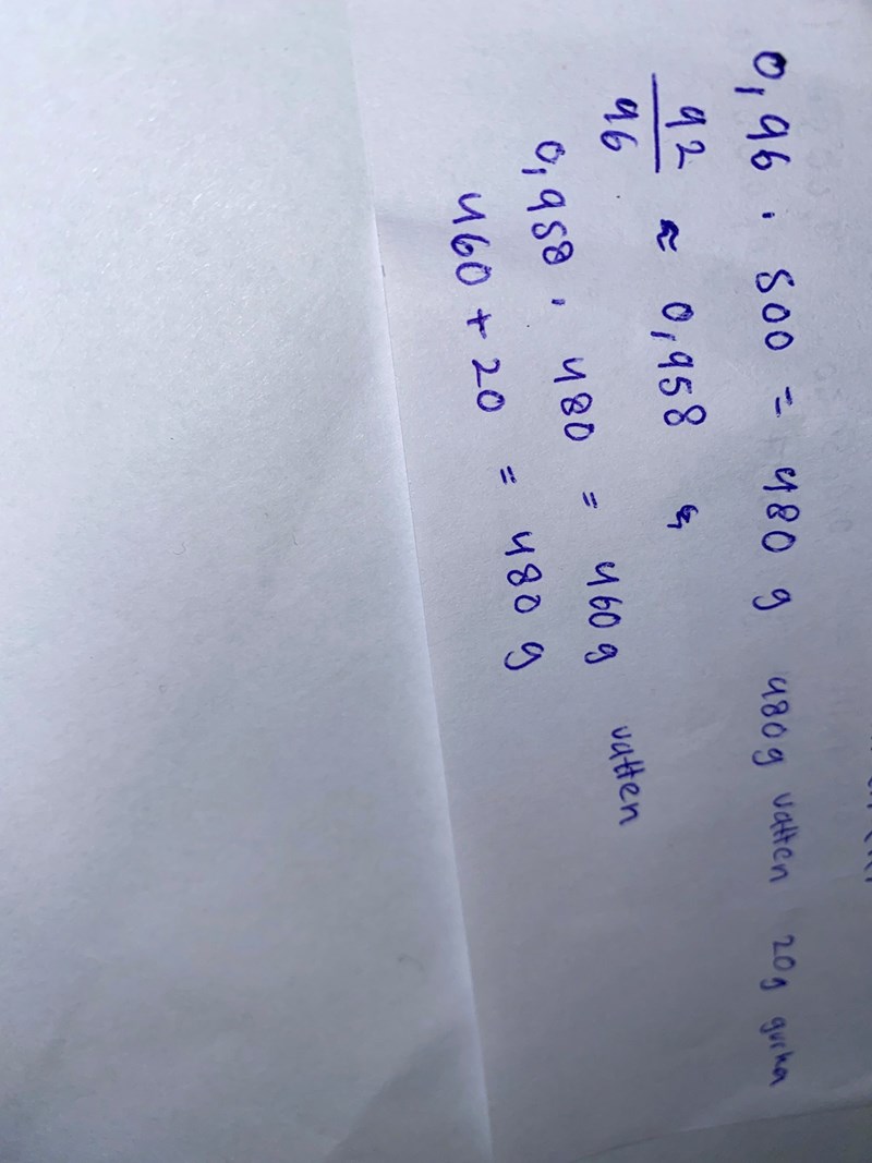 Du börjar bra. Från början innehåller den 480 g vatten och resten är 20 g.