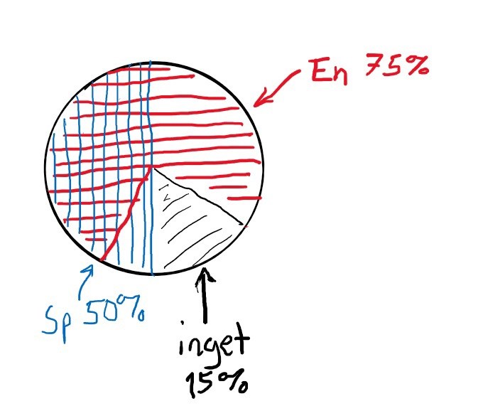 Omvänt, om ingen läste ingetdera så skulle det varit 50% som läste enbart engelska, 25 % enbart spanska och 25 % bådadera.