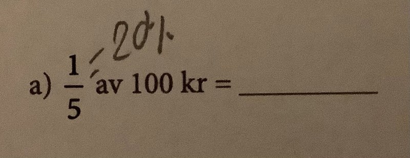 Om 100 kr är = 100 %, vad är då 20 % av dessa 100 kr?