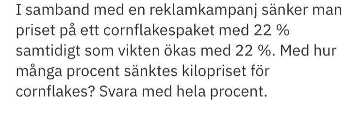 Har kommit fram till att 0,78x = priset efter sänkningen