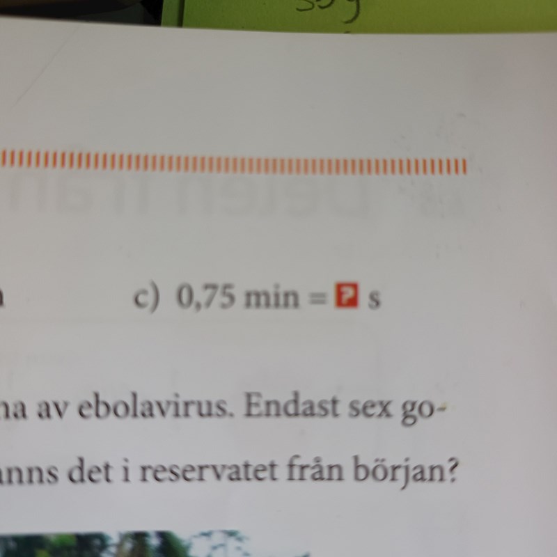 multiplicera 0.75 med 60 eftersom det går 60 sekunder i en minut = 45 sek