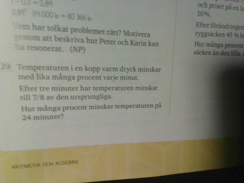 Då tog jag en åttondel/3 för att ta reda på hur mycket temperaturen sänks på en min