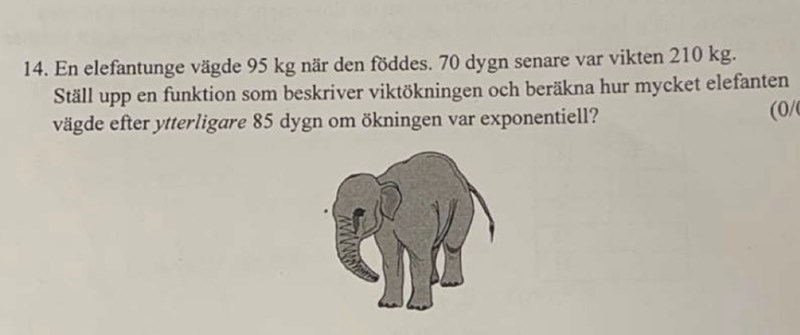 "Ställ upp en funktion som beskriver viktökningen ... om ökningen var exponentiell."