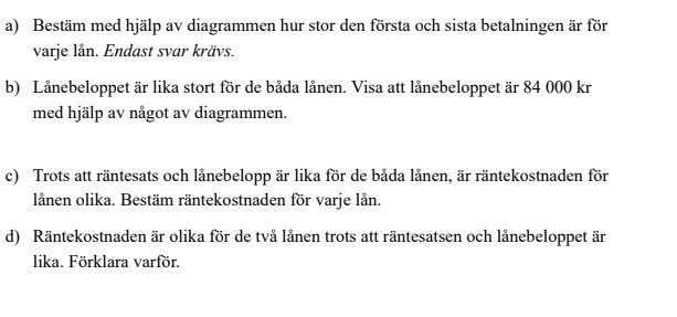 Summa räntebetalningar är då lika med den blå arean i vartdera diagrammet.[Detta är förstås en ekonomisk uppgift, som vi här behandlar med matematiska medel, För att få ihop det. måste man därför känna till en del grundläggande ekonomiska samband ]