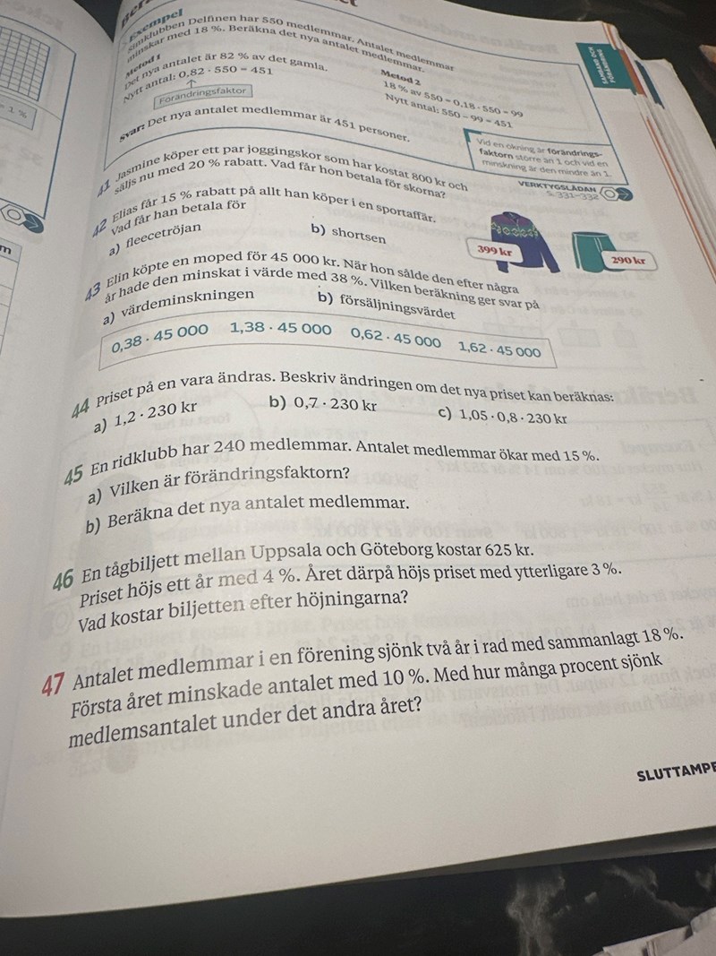 47) först ar det ju 10% alltså 0,9 • x sen med x sammanlagt 18% hur ska jag räkna de