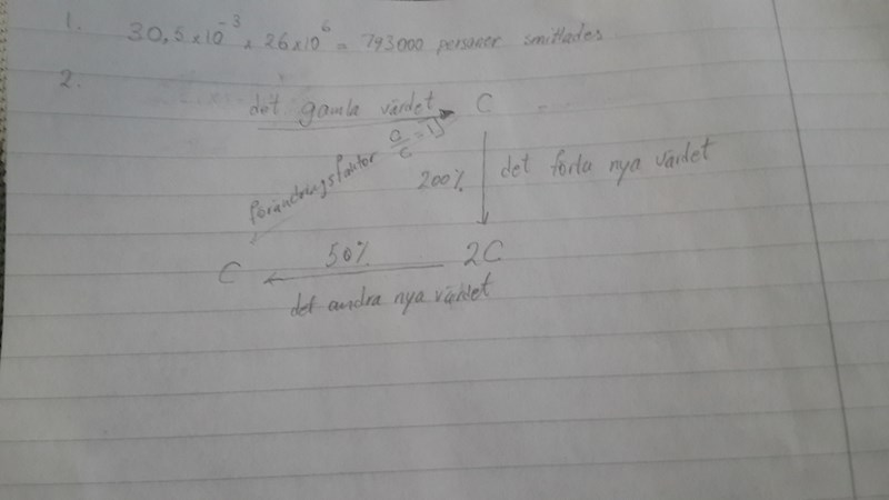 På nr 1 måste du tänka ut hur du hade räknat om det tex vore 30% som blivit smittade. Hur skulle du då gjort...