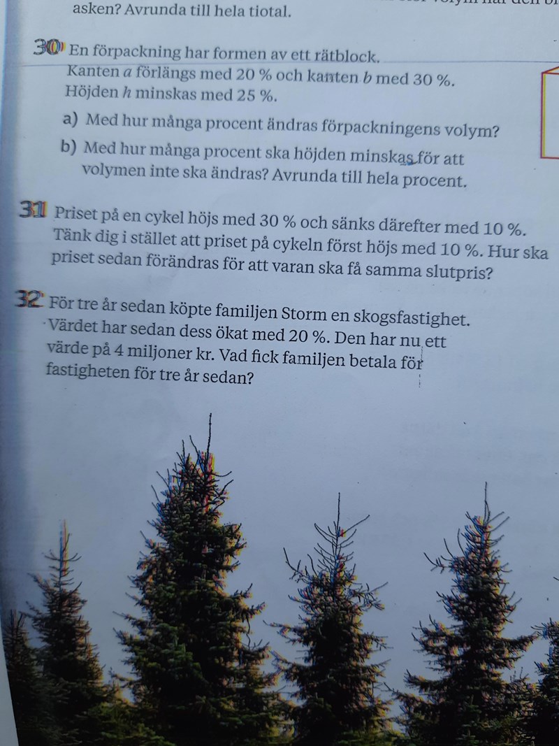 Rad 1 av frågan säger att priset skall höjas med 30% och därfter sänkas med 10% Vad blir då priset?
