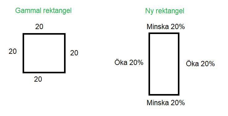 En rektangel har 20 cm på varje sida, två av dem höjs med 20% och 2 av dom skänks med 20%