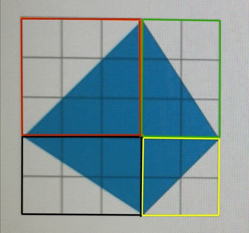 Edit: den blåa fyrhörningen är inte en kvadrat, jag mindes fel.