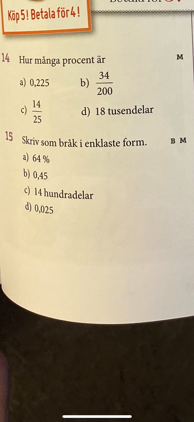 34a: Procent betyder "hundradelar". Talet 0,225 är 22,5 hundradelar. Därför är 0,225 lika med 22,5 %.